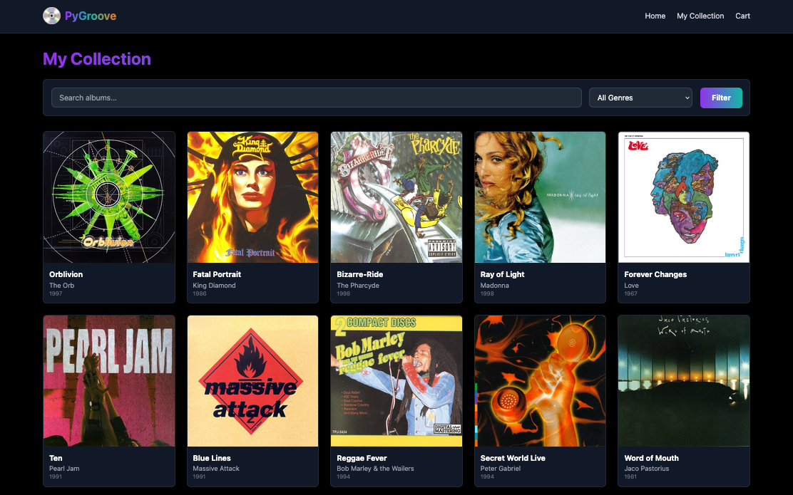 Django (Python), JavaScript, Tailwind CSS, SQLite, Discogs API Integration